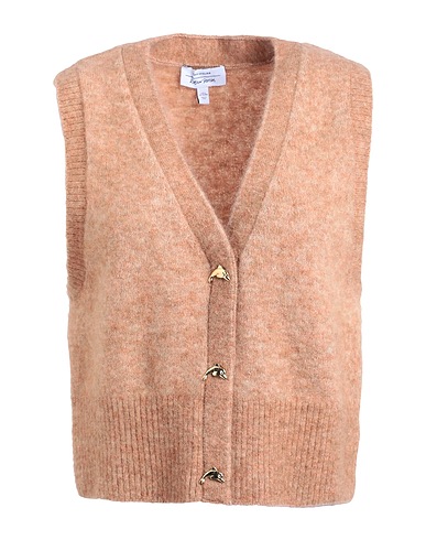 knitted, mélange, medium-weight knit, no appliqués, solid color, v-neck, sleeveless, snap buttons fastening, no pockets, stretch