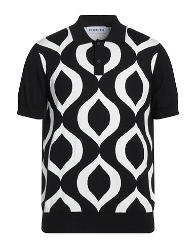 knitted, lightweight knit, no appliqués, two-tone, polo collar, short sleeves, button closing, no pockets