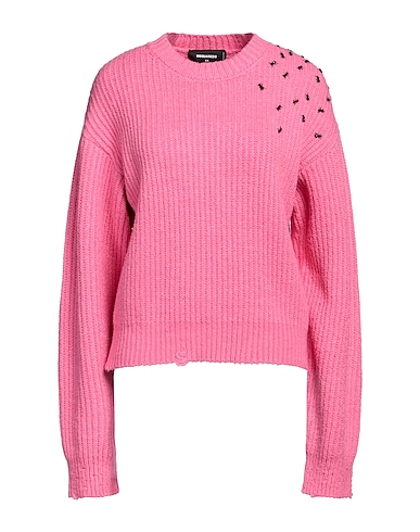 knitted, medium-weight knit, embellished, solid color with appliqués, crewneck, long sleeves, ribbed cuffs