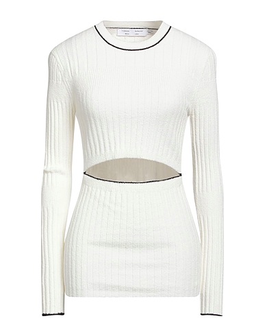 knitted, ribbed, lightweight knit, no appliqués, two-tone, round collar, long sleeves, no pockets, stretch