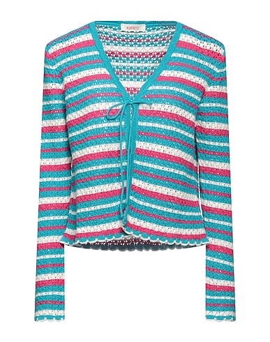 knitted, lightweight knit, no appliqués, stripes, v-neck, long sleeves, self-tie closure, no pockets