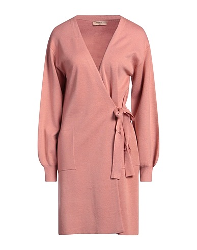knitted, lightweight knit, brand logo, solid color, deep neckline, long sleeves, multipockets