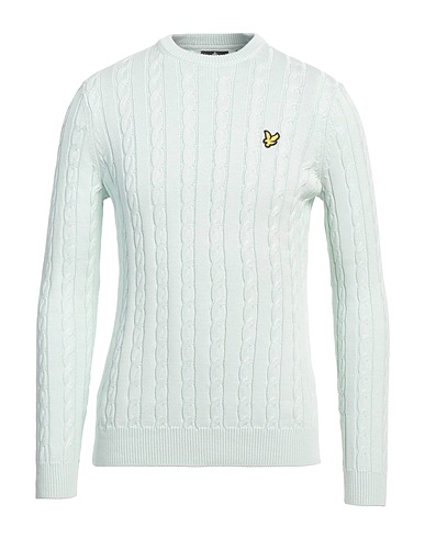 knitted, cable stitch, lightweight knit, brand logo, solid color, crewneck, long sleeves, no pockets