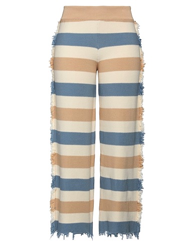 knitted, lightweight knit, brand logo, fringes, striped, high waisted, elasticized waist, wide leg, comfort fit, no pockets, pants