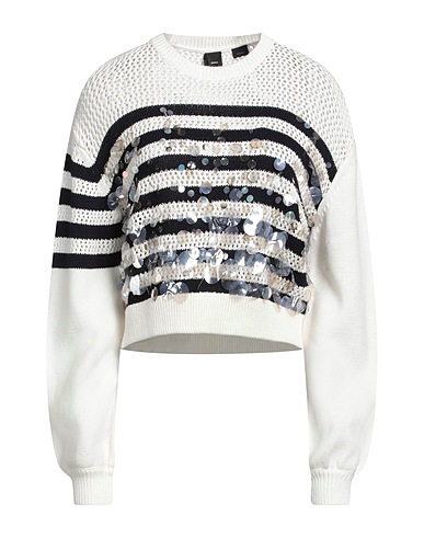 knitted, medium-weight knit, sequins, striped, crewneck, long sleeves, no pockets