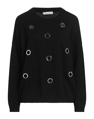 knitted, lightweight knit, metal applications, solid color with appliqués, crewneck, long sleeves, no pockets