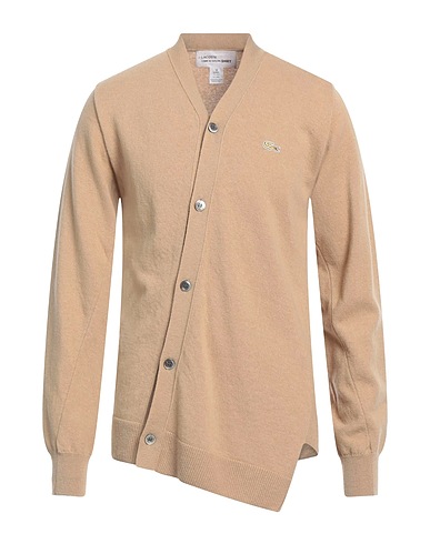 wool, lightweight knit, embroidered logo, solid color, long sleeves, button fastenings, dry clean, do not bleach, do not tumble dry