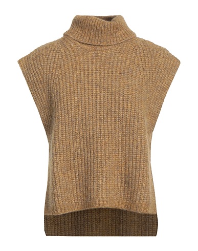 brushed-felt, medium-weight knit, stretchy fabric, no appliqués, mélange, turtleneck, sleeveless, dual back vents, hand wash or dry clean, do not bleach, do not tumble dry, this brand runs small