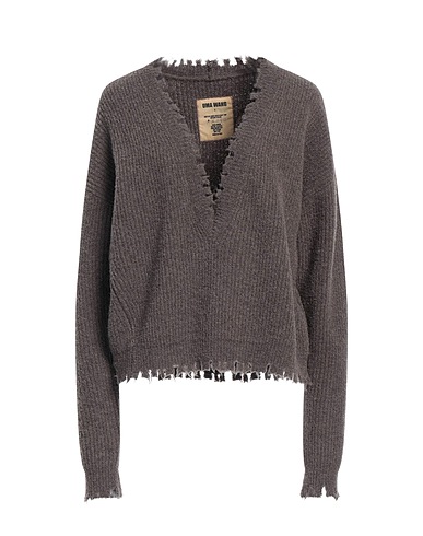 knitted, medium-weight knit, no appliqués, solid color, deep neckline, long sleeves, without pockets, hand wash or dry clean, do not bleach, do not tumble dry