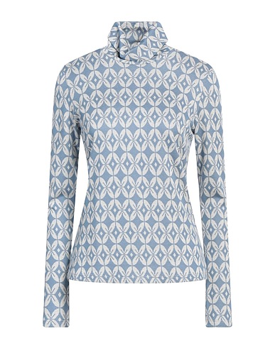 knitted, lightweight knit, stretchy fabric, no appliqués, floral-print, turtleneck, long sleeves, hand wash or dry clean, do not bleach, do not tumble dry