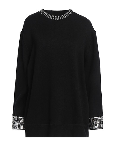 knitted, lightweight knit, solid color with appliqués, sequins, crewneck, long sleeves, hand wash, do not bleach, do not tumble dry
