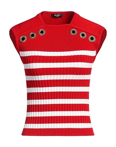 knitted, lightweight knit, striped, button-embellished, square neckline, sleeveless, hand wash, do not bleach, do not tumble dry, do not iron