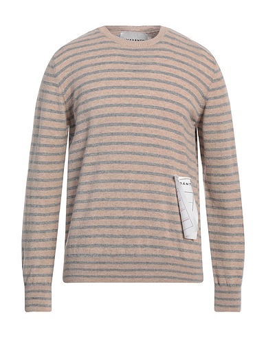 wool, lightweight knit, mélange, striped, brand logo, crewneck, long sleeves, machine wash or dry clean, do not bleach, do not tumble dry