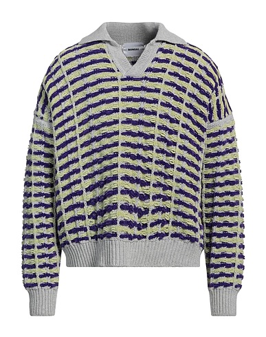knitted, chenille, heavy-weight knit, multicolor, no appliqués, polo collar, long sleeves, machine wash or dry clean, do not bleach, do not tumble dry