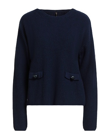 knitted, medium-weight knit, solid color, button-embellished, brand logo, crewneck, long sleeves, faux pockets, hand wash, do not bleach, tumble dry