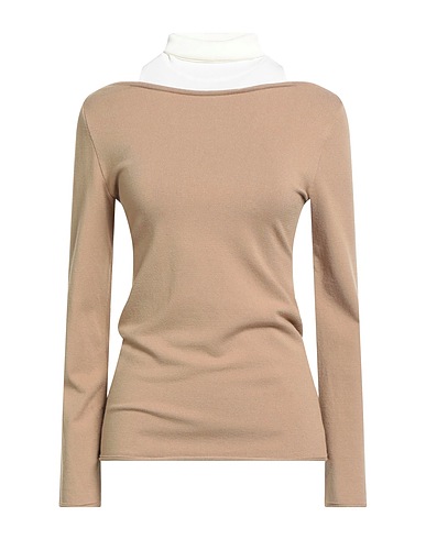 knitted, lightweight knit, two-tone, no appliqués, turtleneck, long sleeves, stretch, hand wash or dry clean, do not bleach, do not tumble dry, this brand runs large