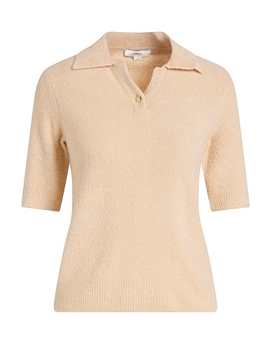 knitted, lightweight knit, stretchy fabric, no appliqués, solid color, buttoned neckline, short sleeves, hand wash or dry clean, do not bleach, do not tumble dry