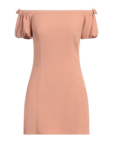 crepe, bow-detailed, solid color, boat neckline, short sleeves, fully lined, hook fastenings, zipper fastening, without pockets, stretch, flared dress