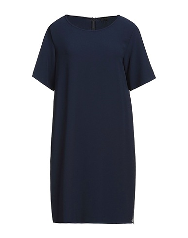 crepe, pleated, no appliqués, solid color, round collar, short sleeves, zipper closure, no pockets, unlined, stretch, trapeze style