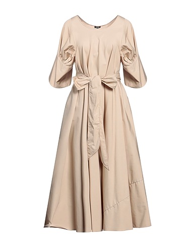 flared dress, poplin, solid color, pleated, crewneck, short sleeves, unlined, tie fastening, multipockets, machine wash or dry clean, do not bleach, do not tumble dry