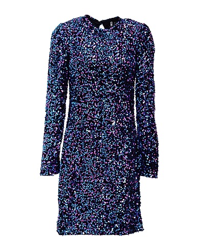 bodycon dress, chenille, multicolor, sequins, crewneck, long sleeves, unlined, 1 button