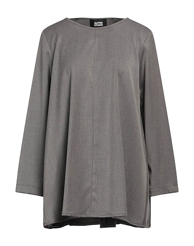 top, woven, solid color, no appliqués, crewneck, long sleeves, unlined, stretch