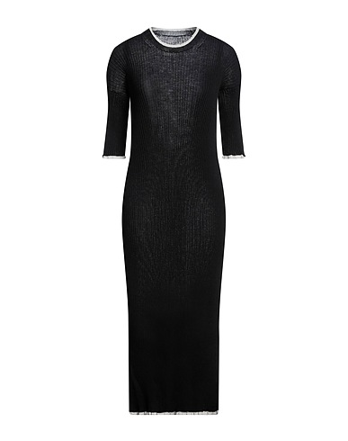 dress, boiled wool, ribbed, two-tone, no appliqués, crewneck, 3/4 length sleeves, unlined, without pockets, rear slit, do not wash, do not tumble dry