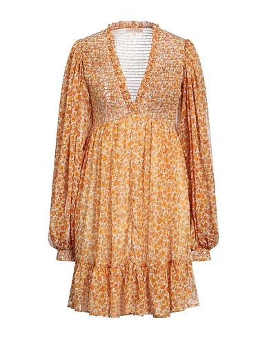dress, crepe, floral-print, gathered, v-neck, long sleeves, fully lined, zipper fastening, without pockets