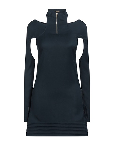 jersey, no appliqués, solid color, turtleneck, long sleeves, unlined, zipper closure, no pockets, dress