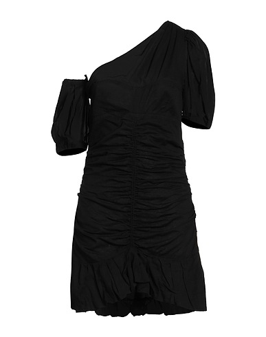 one-shoulder dress, woven, solid color, gathered, detachable application, scoop neckline, one-shoulder, cuffs with elastic, partially lined, zipper fastening
