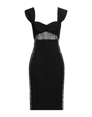 bodycon dress, crepe, lace, two-tone, no appliqués, deep neckline, sleeveless, unlined