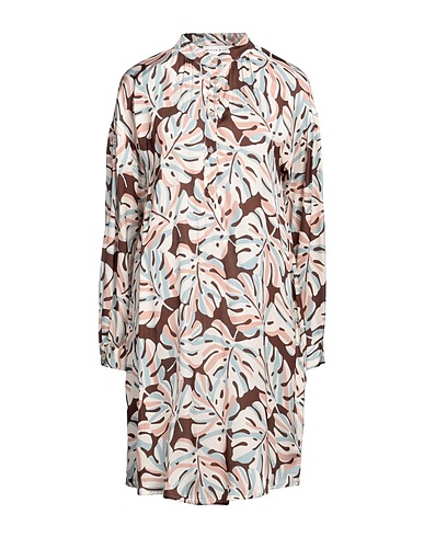 satin, no appliqués, floral design, mandarin collar, long sleeves, buttoned cuffs, unlined, button closing, no pockets, shirt dress