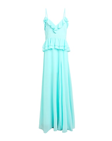 gown, crepe, solid color, ruffles, v-neck, sleeveless, fully lined, zipper fastening, without pockets, machine wash or dry clean, do not bleach, do not tumble dry, this brand runs small