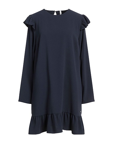 plain weave, ruffles, solid color, crew neck, long sleeves, unlined, 1 button, no pockets, dress