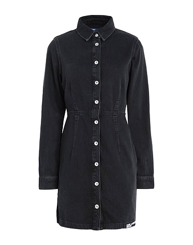 denim, brand logo, solid color, classic collar, colored wash, long sleeves, buttoned cuffs, unlined, button closing, multipockets, shirt dress