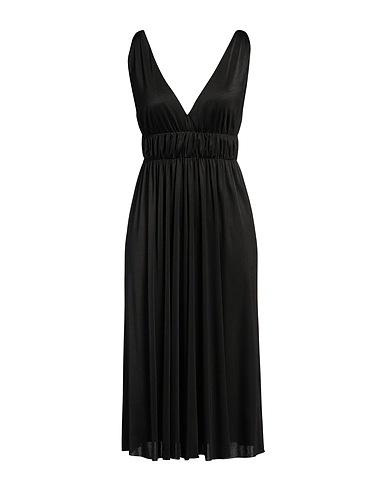 flared dress, jersey, gathered, solid color, deep neckline, sleeveless, unlined, no pockets