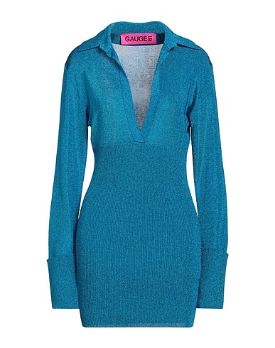 bodycon dress, knitted, lightweight knit, lamé, solid color, no appliqués, deep neckline, long sleeves, unlined, without pockets