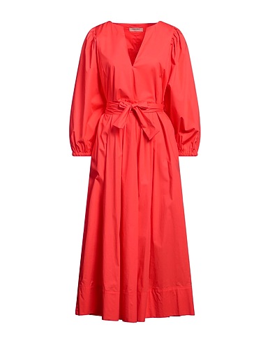 flared dress, woven, stretchy fabric, solid color, brand logo, belt, v-neck, long sleeves, unlined, without pockets
