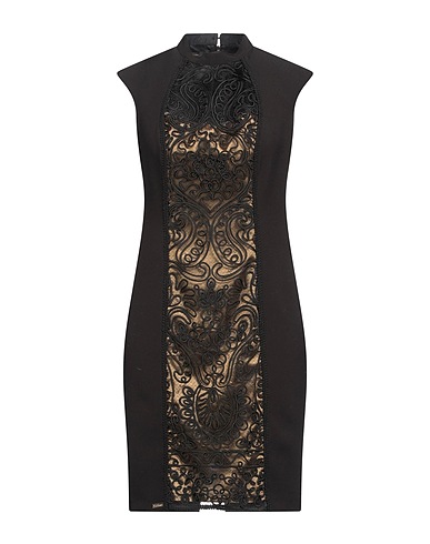 bodycon dress, crepe, lace, stretchy fabric, two-tone, brand logo, crewneck, sleeveless, partially lined, zipper fastening, without pockets