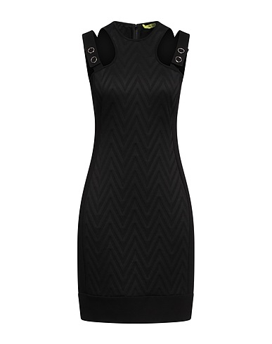bodycon dress, knitted, lightweight knit, solid color with appliqués, metal applications, crewneck, sleeveless, unlined, zipper fastening, without pockets