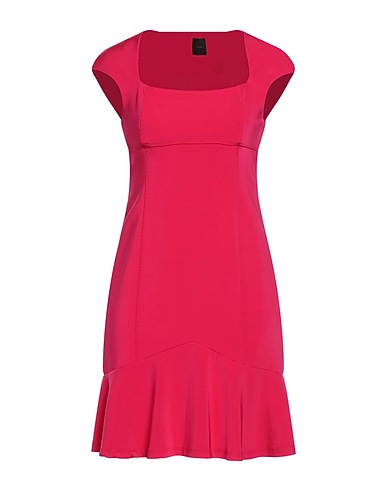 jersey, no appliqués, solid color, square neckline, short sleeves, unlined, zipper closure, no pockets, stretch, trapeze style