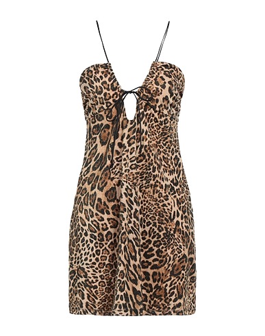 bodycon dress, synthetic jersey, lamé, stretchy fabric, leopard-print, no appliqués, deep neckline, sleeveless, fully lined, without pockets