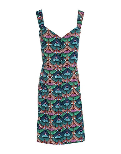 crepe, no appliqués, multicolor, v-neck, sleeveless, unlined, button fastenings, no pockets, flared dress