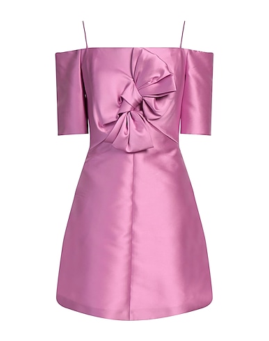 flared dress, satin, bow-detailed, solid color with appliqués, square neckline, short sleeves, partially lined, zipper fastening, hook fastenings, multipockets