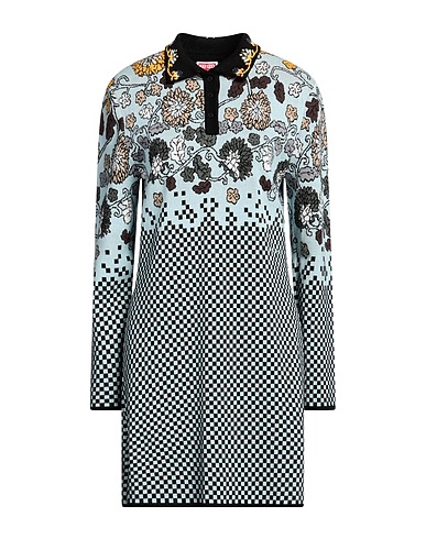 knitted, lightweight knit, no appliqués, floral-print, checked, polo collar, long sleeves, unlined, button fastenings, without pockets, machine wash or dry clean, do not bleach, do not tumble dry, flared dress