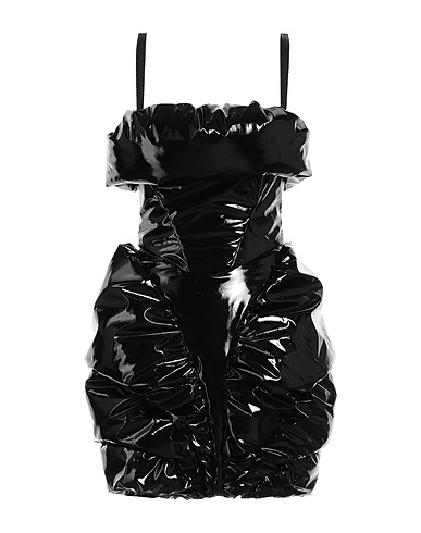coated fabric, gathered, solid color, deep neckline, sleeveless, fully lined, zipper fastening, without pockets, do not wash, do not bleach, do not tumble dry, do not iron, bodycon dress