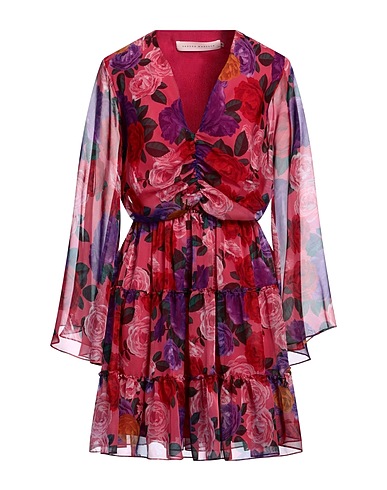 voile, gathered, floral-print, v-neck, long sleeves, without pockets, dry clean, do not bleach, do not tumble dry, flared dress