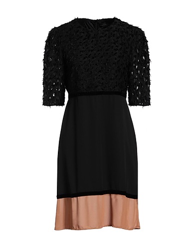 crepe, fringes, two-tone, crewneck, short sleeves, fully lined, zipper fastening, without pockets, hand wash or dry clean, do not bleach, do not tumble dry, flared dress