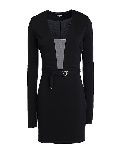 tulle, jersey, belt, solid color, v-neck, long sleeves, zipper fastening, without pockets, stretch, dry clean, do not bleach, do not tumble dry, bodycon dress, this brand runs small