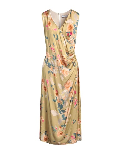 flared dress, satin, no appliqués, floral-print, deep neckline, sleeveless, unlined, without pockets, side slit, dry clean, do not bleach, do not tumble dry